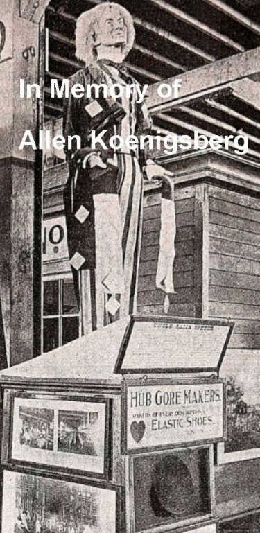 That Edison Phonograph and Uncle Sam automaton at the 1893 WCE Hub Gore Exhibit's photograph for me, however, will now also be a poignant reminder of Allen. I was recently doing some research on the Trans-Mississippi Exposition of 1898 in Omaha and I found a picture of the Hub Gore Exhibit at that 1898 fair -- and in the top corner of the exhibit there was an Edison Phonograph with a horn. My first thought was whether Hub Gore had continued to use a phonograph to advertise their shoes in 1898? I sent Allen the picture from that exhibit and asked what he thought of that possibility. And in the Subject line of that email I wrote: