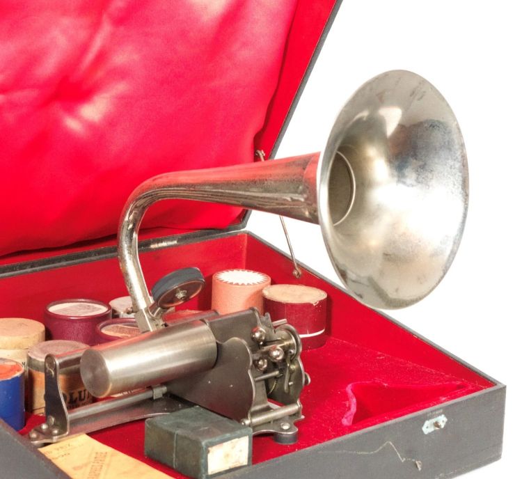 Pathe Model G Exhibitor's Cylinder Phonograph w/Nickel Hunter's Horn, 1899 offered by Pathe Freres in Paris. (Courtesy TechnoGallerie).