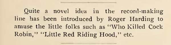 An early reference to children's stories on records was in the August-September 1897 issue of The Phonoscope.