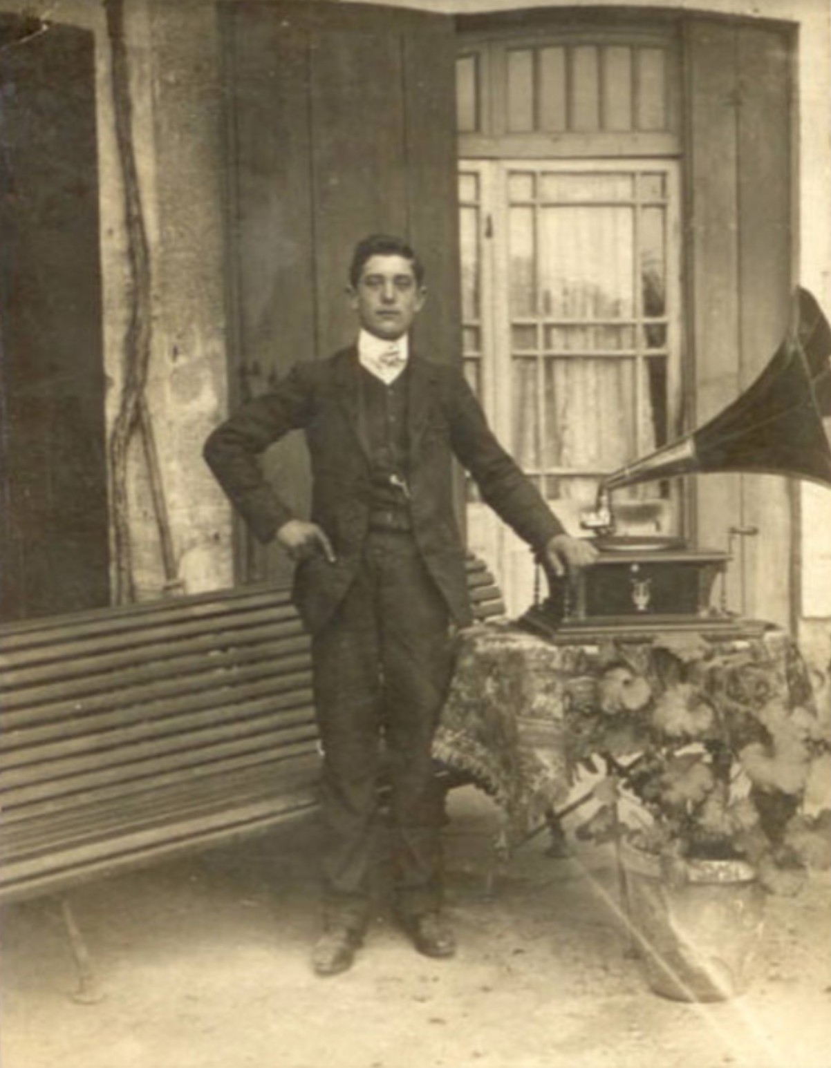 Baby in portrait with Gramophone, ca. 1915 (PM-0689). |