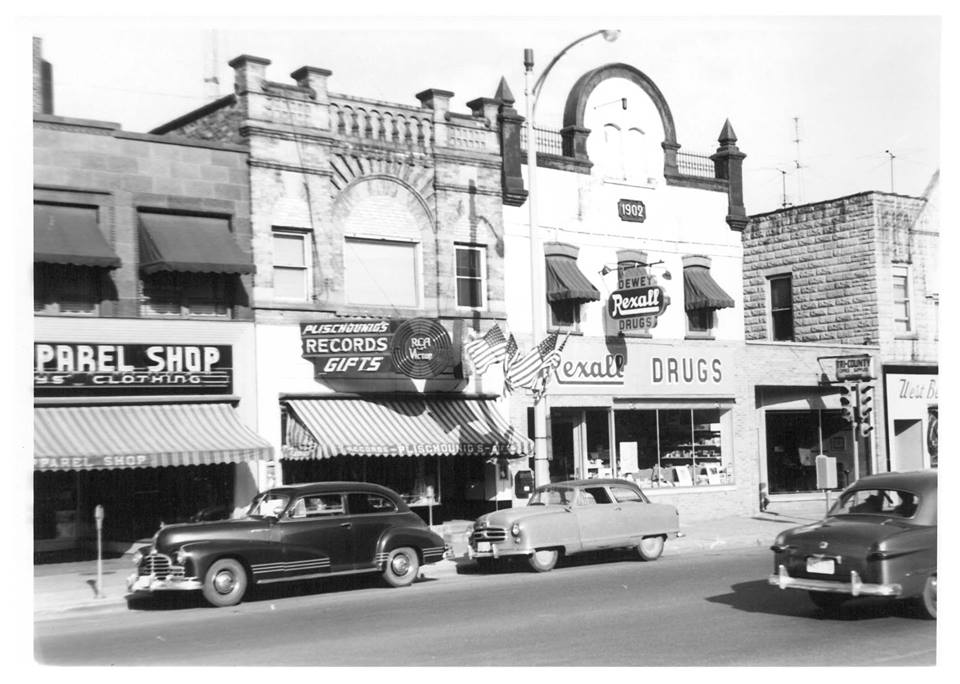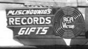 Records in the 1950's could be bought at Plischounigs on Main Street, West Bend, Wisconsin. Note the RCA Records on the front of the store's sign.