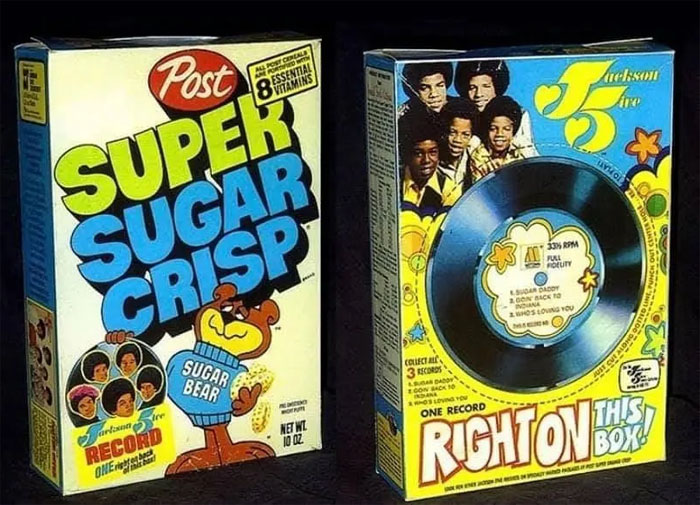 FACTOLA, 1956 - Phonograph records were put on cereal boxes as a premium to cut-out and play. According to mrbreakfast.com and Discogs the first records were on General Mills' Wheaties cereal boxes in 1956, 78 RPM cut-outs for Walt Disney's Mouseketeer Records of Chip 'N Dale performing "Ten Little Indians" and "The Laughing Song."