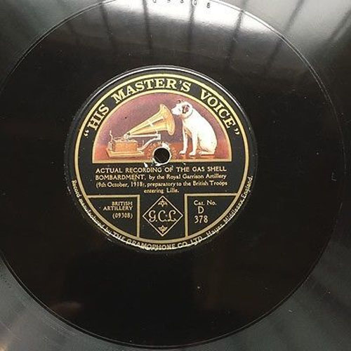 FACTOLA, October 1918 - The only authentic sounds of the First World War are said to be the recording of the gas shell bombardment by the Royal Garrison Artillery, 9th October 1918, preparatory to the British Troops entering Lille, France.