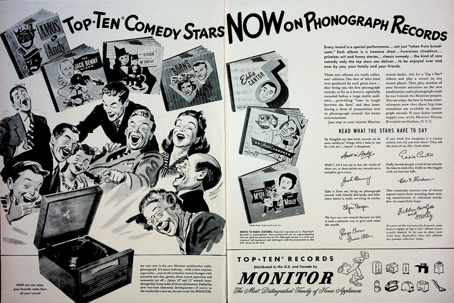 Recorded humor allowed the public to hear radio stars in new or old routines, repeatedly.