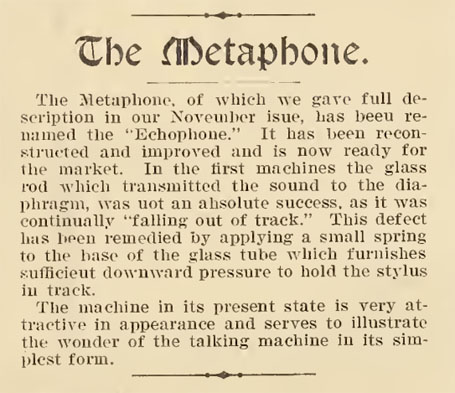 Metaphone – Renamed to "Echophone" The Phonoscope, December 1896