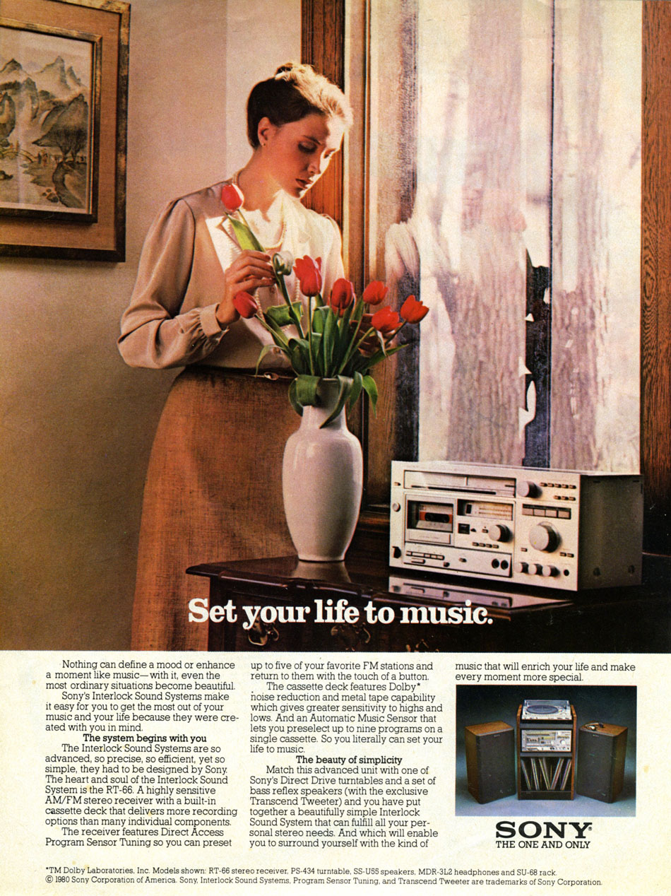 Set your life to music - Sony's Interlock Sound Systems with Sony's Direct Drive turntable, 1980.