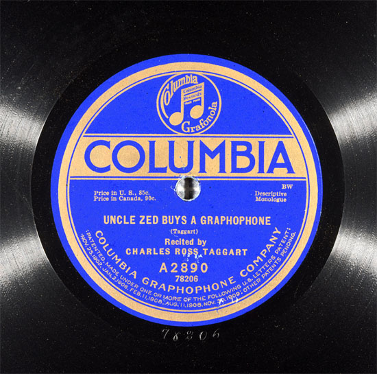 "Uncle Zed Buys A Graphophone" by Charles Ross Taggart, Recorded December 16, 1918. Label and Recording Courtesy of David Giovanonni and i78s.org - LISTEN