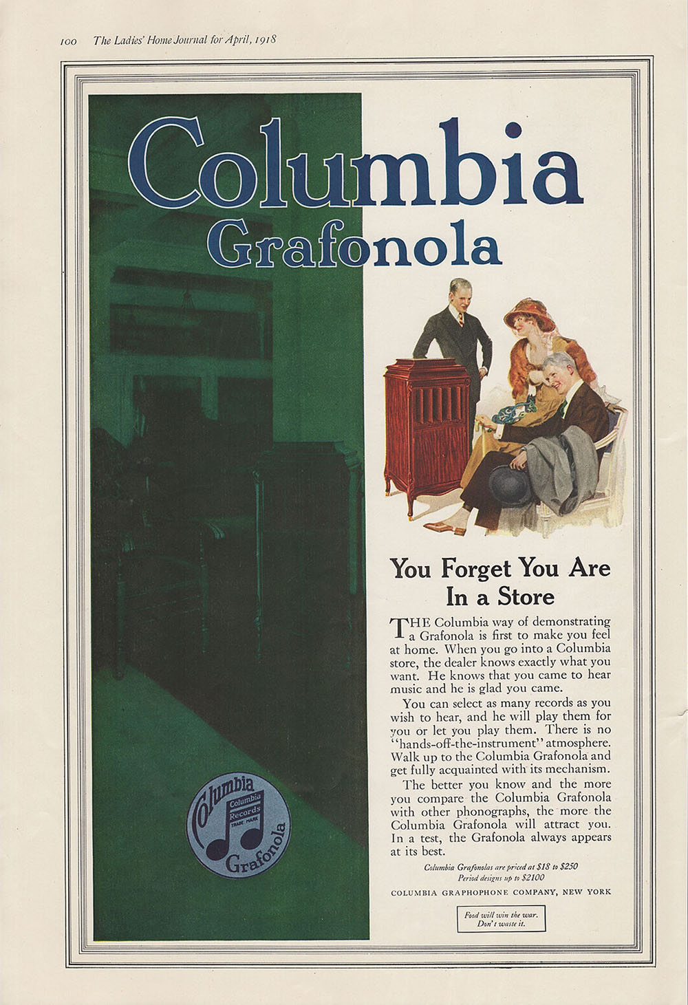 are in a Store" Columbia ad, April 1918