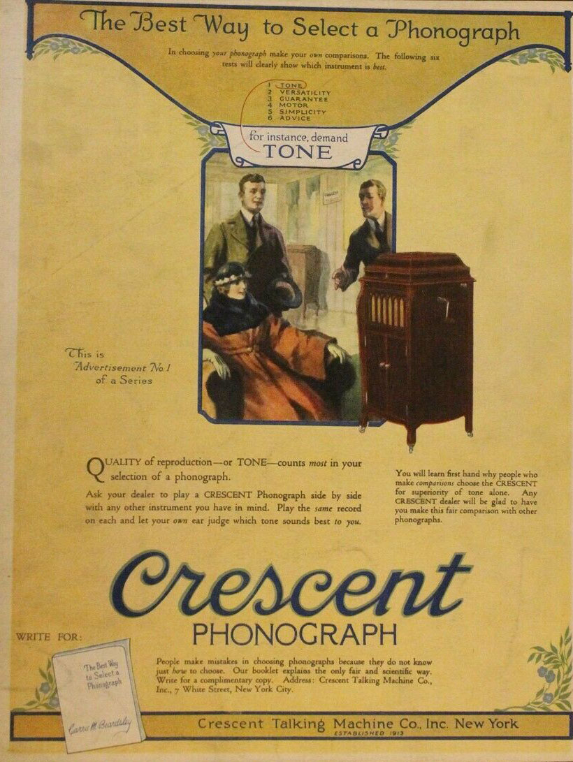 "Ask a dealer to play a Crescent Phonograph side by side with