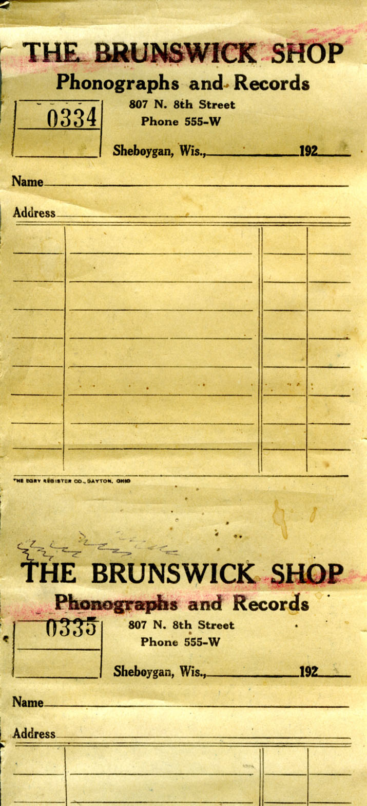 Receipt ready for writing up a sale, circa 1923
