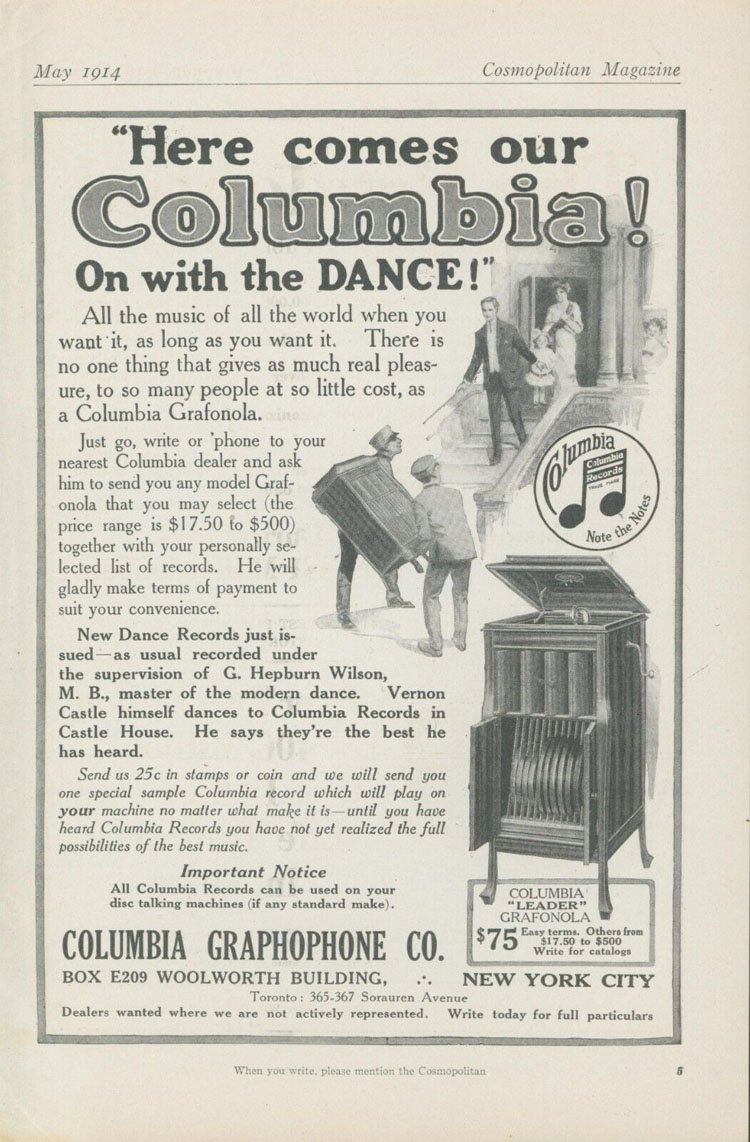of Columbia Records," Cosmopolitan Magazine, 1910.