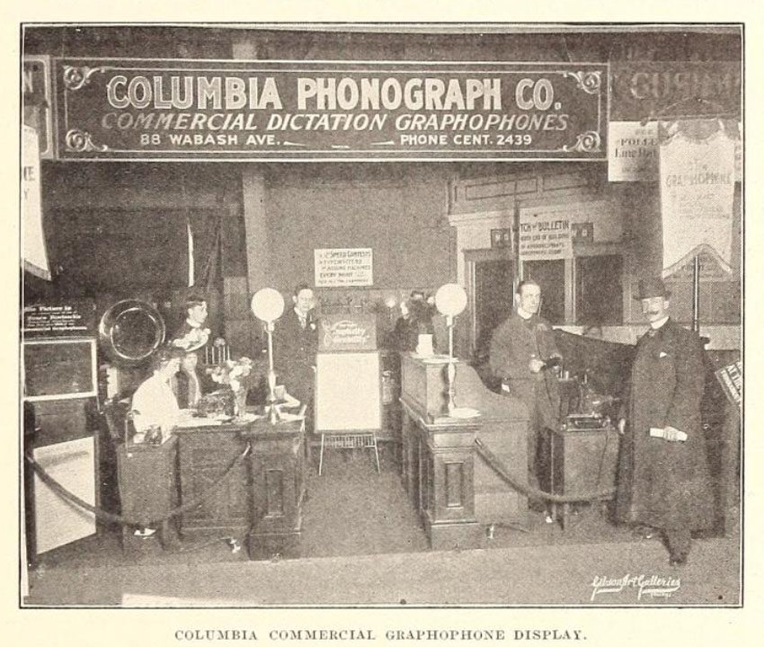 Display at the Office Appliance and Business Systems Show at the Coliseum, Chicago, March 17-24, 1906. The Talking Machine World, April 1906