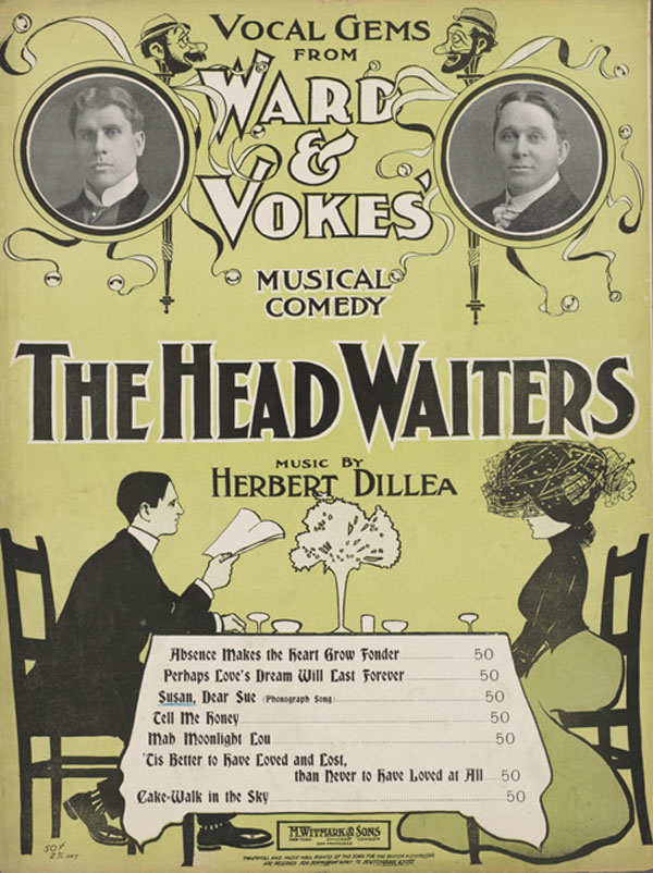 My personal favorite popular culture example of the phonograph being used in a court case is from the 1901 Musical Comedy "The Head Waiters." Pictured in the sheet music (below) are the Boss and Susan, his typist, during their courtship and out for dinner. One of the songs from this musical is titled "Susan, Dear Sue (Phonograph Song)" with the boss, who was in love with Susan, saying "“You’re name Susan, won’t do; Link it with mine forever”. Be mine dear from today and I will part from you never.”