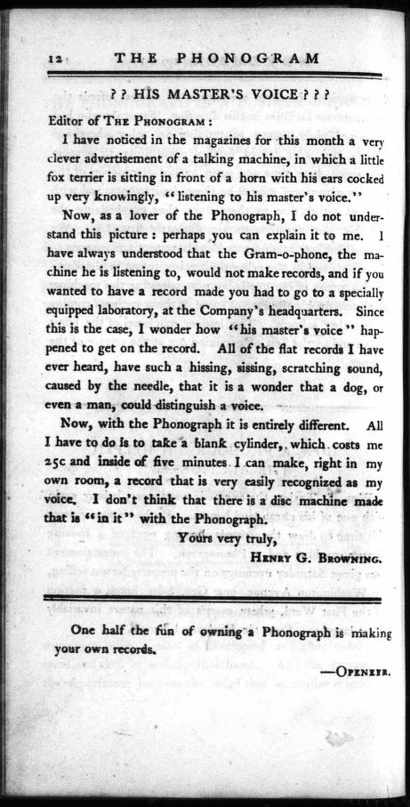 in "Voice," to create "His Master's Vice."