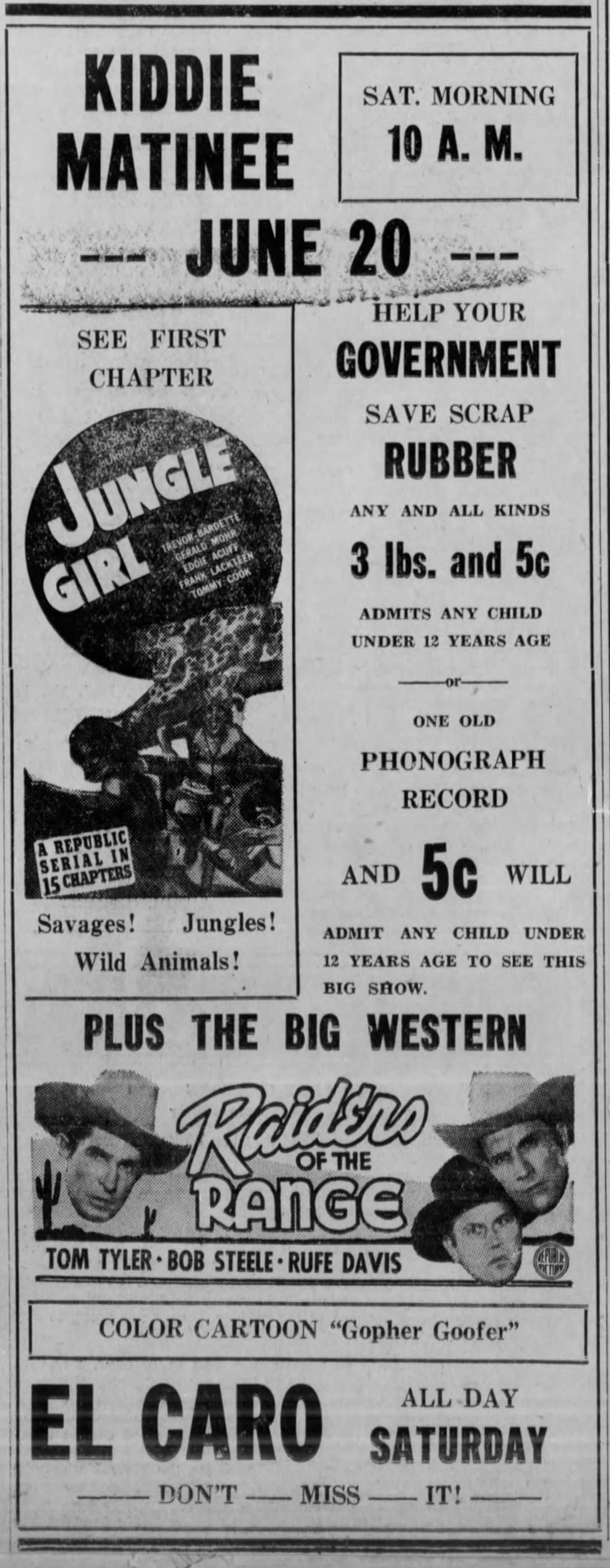 Record and 5 Cents for Kiddie Matinee Admission - The