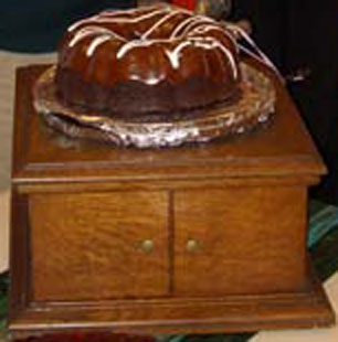 cylinder playing phonograph (the chocolate cake does, however, have