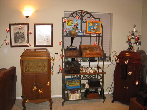 Phonograph Holiday tree and to the phonograph display cases and machines.