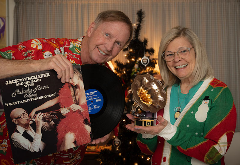 Douglas Keister and Wendy Shaw. DK is displaying an LP and its