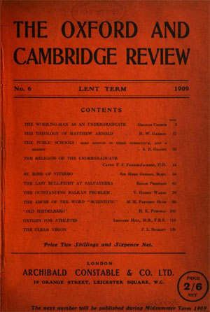 Originally published in The Oxford and Cambridge Review, Archibald Constable & Co., Ltd, London, November 1909