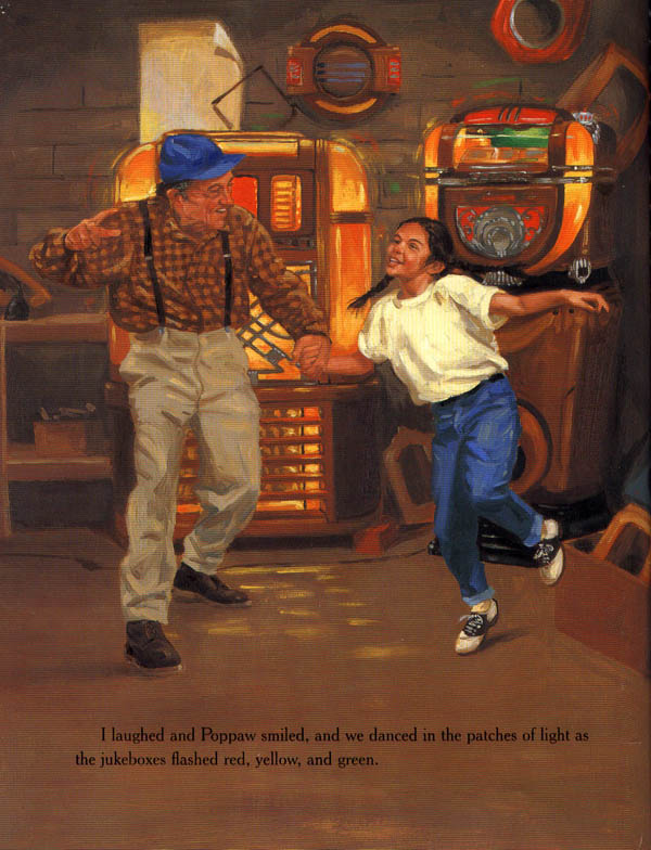 Donna's grandfather, Poppaw, is a jukebox man. He has jukeboxes in dozens of diners and restaurants, fish camps and truck stops all over the state. One day Donna joins Poppaw as he makes his rounds -- changing the records and fixing the machines. And as the jukebox throws patches of light on the floor, Donna discovers a whole new world.