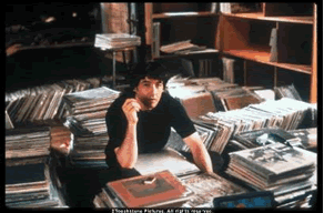 Rob Gordon, played by John Cusack, lacks many redeeming qualities in terms of his relationships with women. His enjoyment in having a record store, making lists and mixing tapes are the interesting subjects of the movie for Friends of the Phonograph including his bantering with his 'employee Barry (Jack Black) about records, songs and top five lists -- classic and perfect for this page.