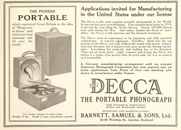 Decca owes its supremacy to its ingenious and fully patented construction."